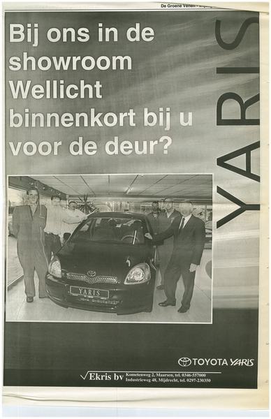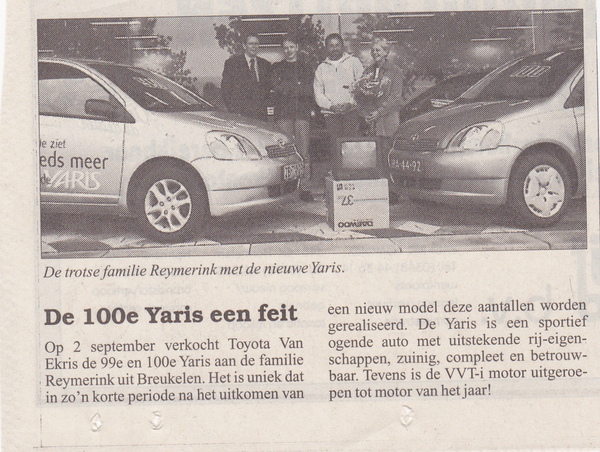 • 100e Yaris afgeleverd in Maarssen. Van Ekris gaf toen een TV