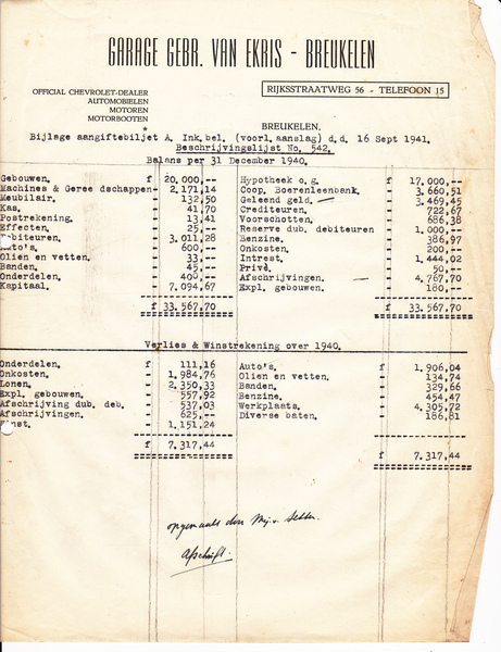 • Voorraad en inventarisstaat uit 1925 Van Ekris Breukelen