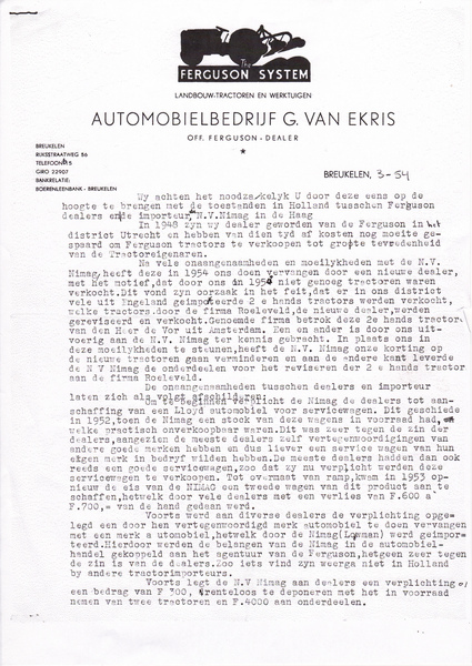 • Contract Furguson System en Van Ekris B.V. in 1954