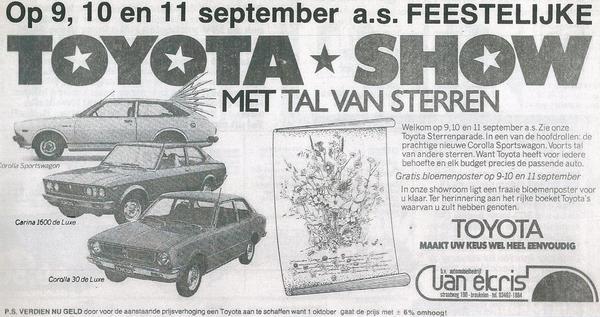 • Van Ekris Toyota 1974 advertentie VAR nieuwsblad