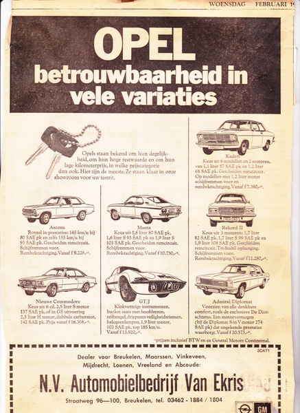 • De Opel tijd bij Van Ekris Breukelen