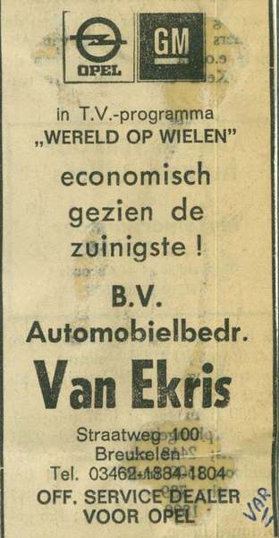 • Gratis schadereparaties bij Van Ekris in Breukelen in 1978