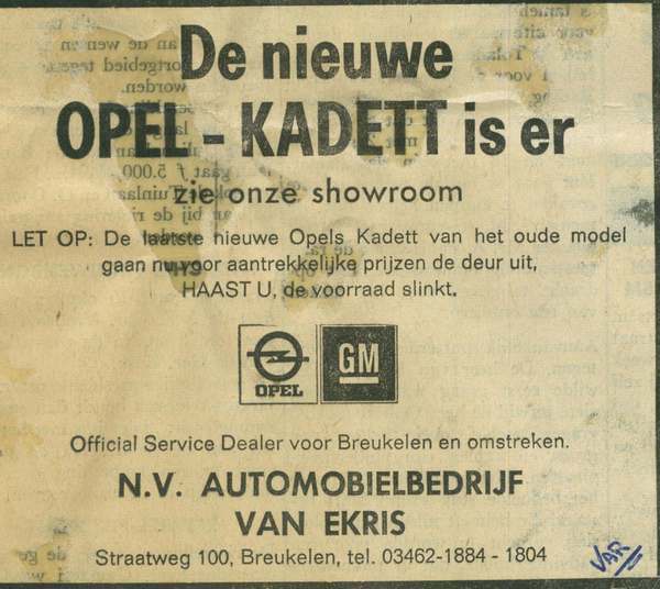 • Opel Kadett advertentie VAR nieuwsblad