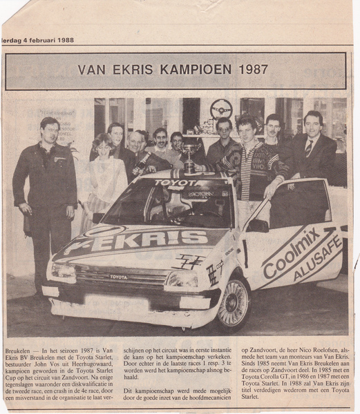 • Toyota Van Ekris Zandvoort Starlet cup Kampioen 1988