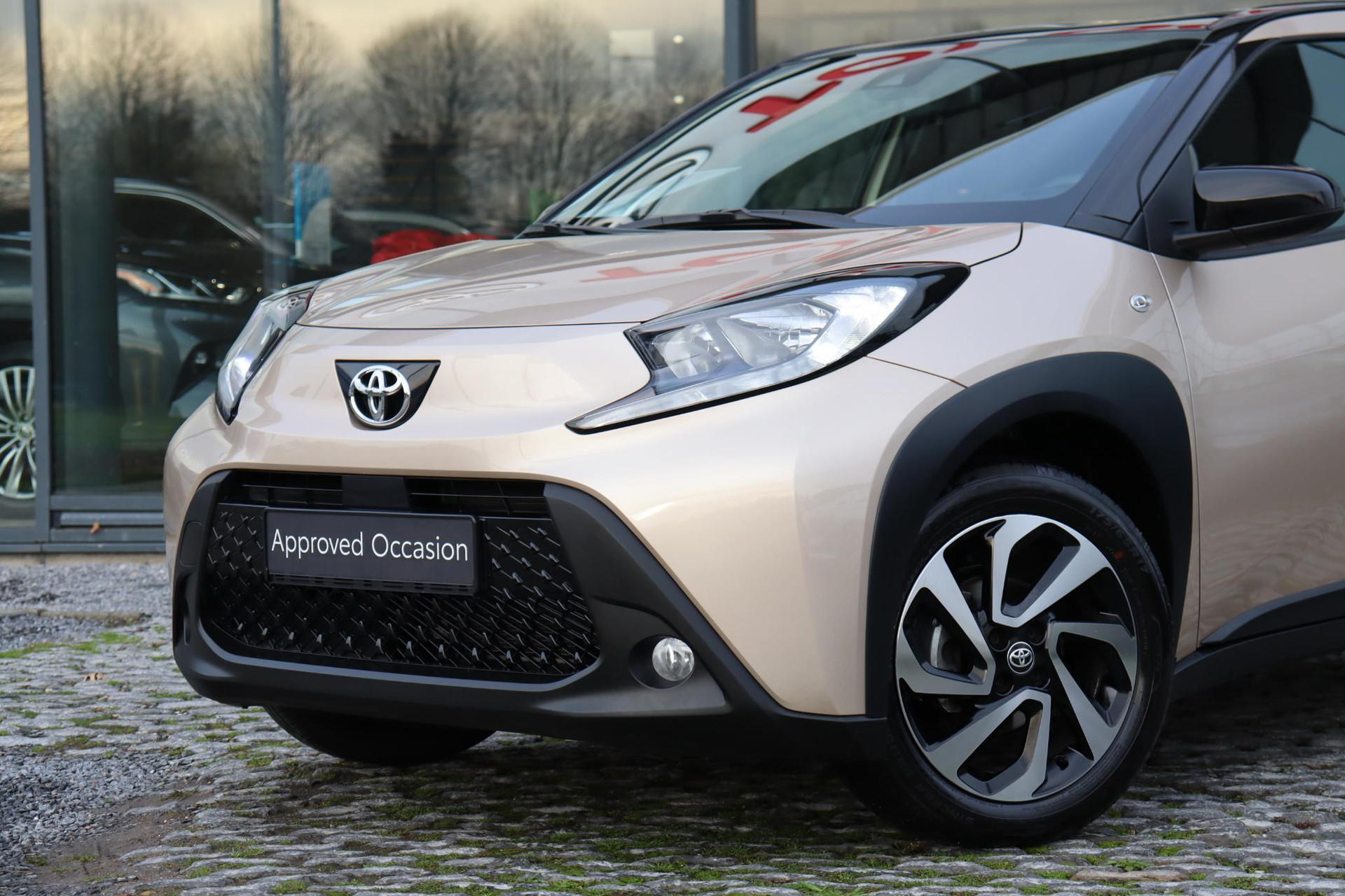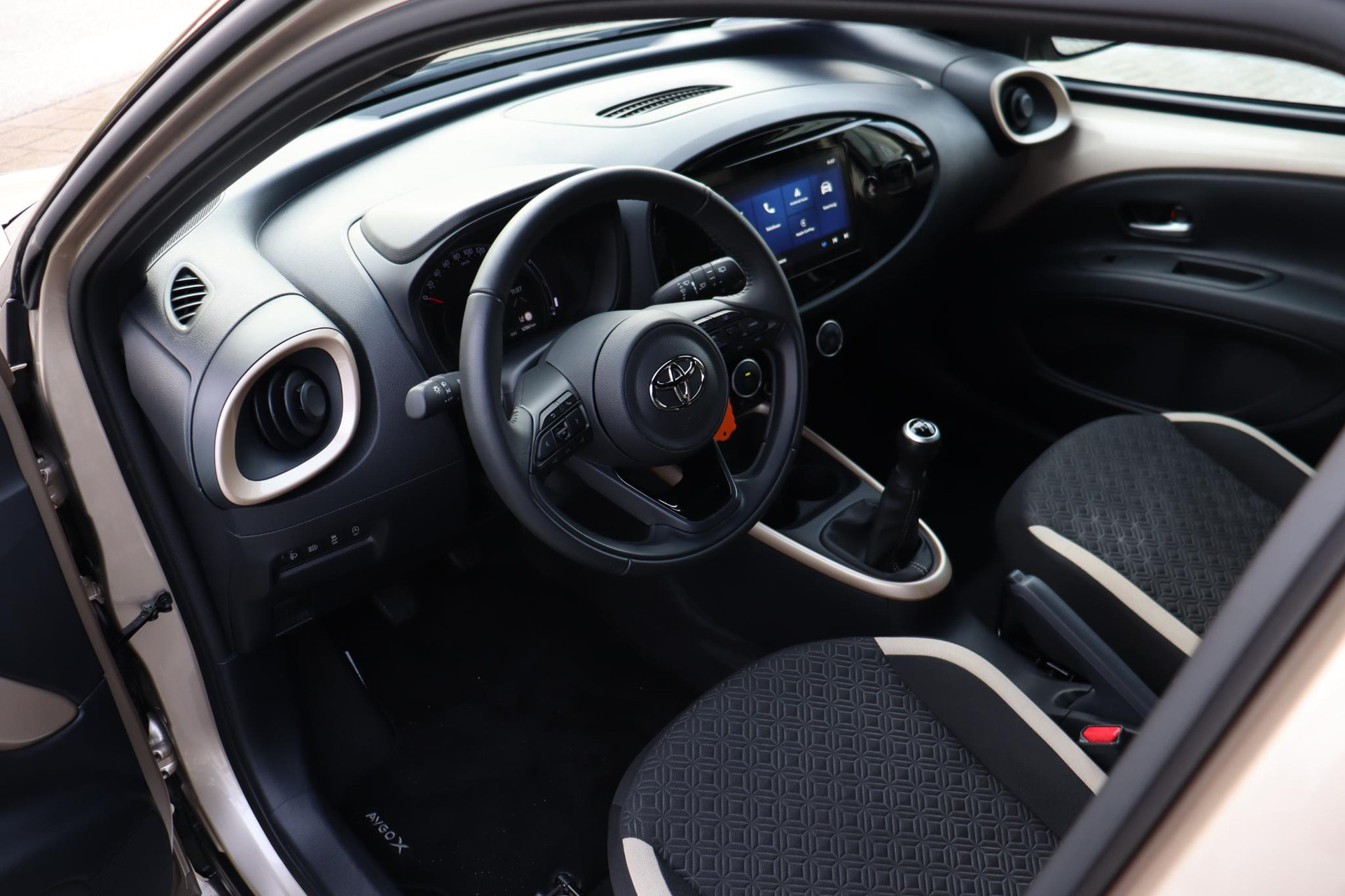 De Toyota Aygo X 1.0 handgeschakeld Pulse uitvoering in de prachtige kleur Ginger Beige met een Zwart dak. Bij de Pulse uitvoering krijgt u veel opties en extra's zoals: Stoelverwarming, Achteruitrijcamera, Apple-carplay, Android-auto, Lichtmetalen velgen, Privacy glass, Airconditioning, LED verlichting, Mistlampen, Bestuurderstoel in hoogte verstelbaar, Elektrisch verstelbare buitenspiegels, Elektrische ramen voor, DAB Audio, en nog veel meer!!