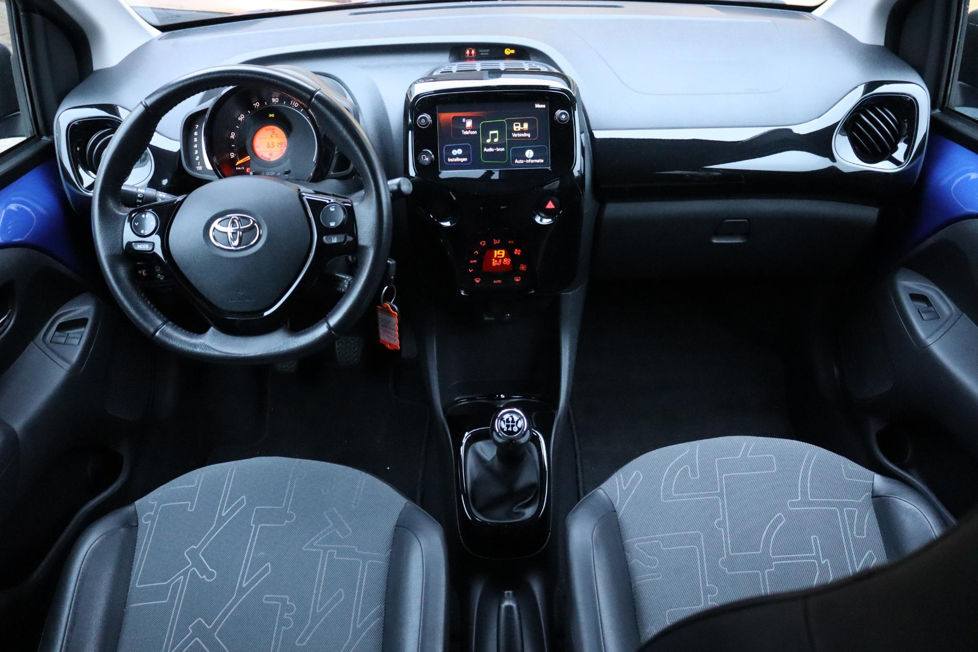 Bijzondere Aygo X-Clusiv in de kleur Blauw/Zwart. Deze Aygo is uitgerust in de meest luxe uitvoering de X-Clusiv. De Aygo is rijk uitgerust met o.a Half leder, 15 inch lichtmetalen velgen, climate control, Toyota Safety Sense, Lichtsensor, Apple carplay, android auto, Bluetooth, DAB audio, parkeercamera en meer!
