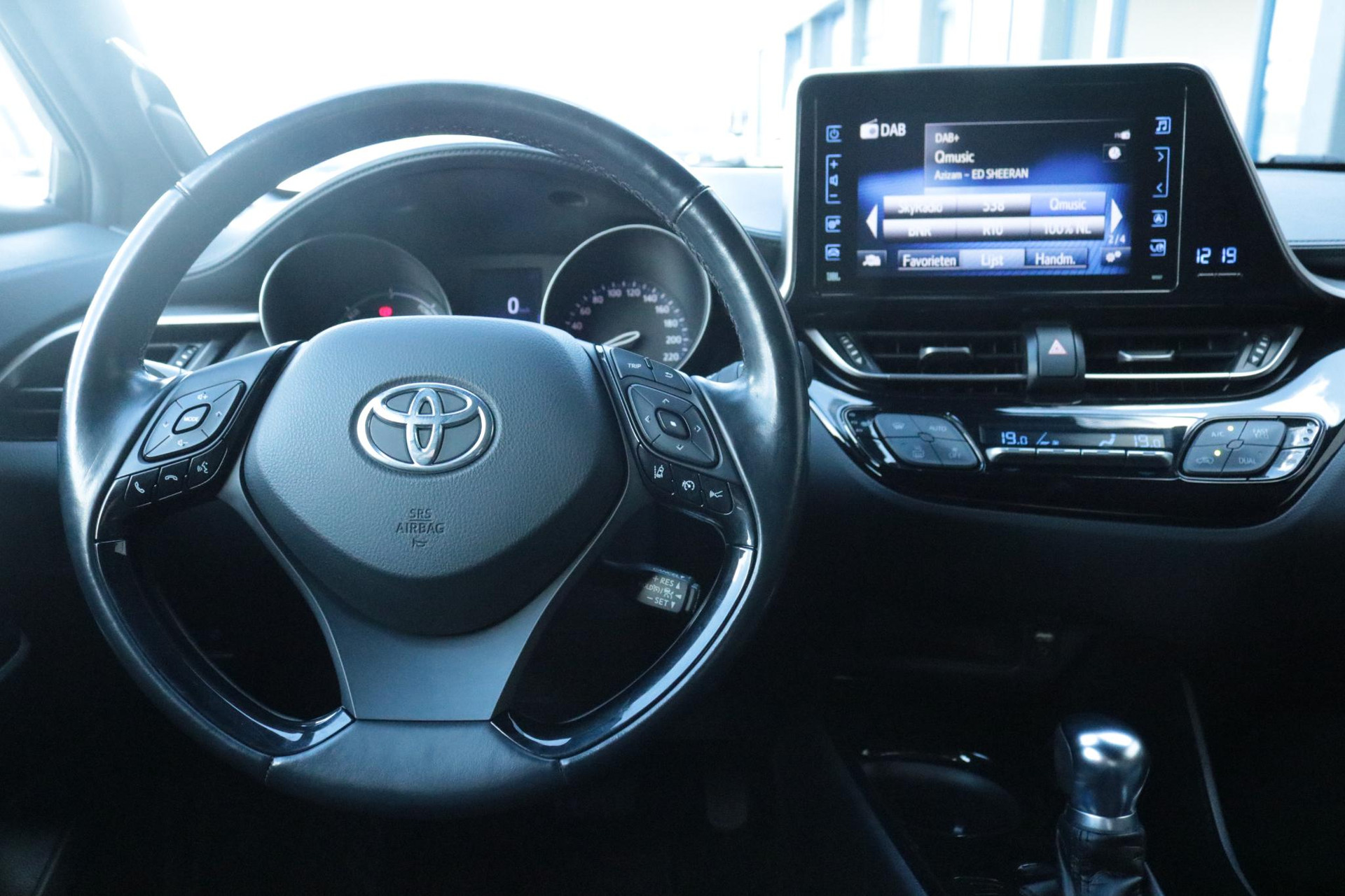 Deze Sportive Toyota C-HR 1.8 Hybrid Style Bi-Tone in de flitsende kleur Cyan Splash Blue metallic met zwart dak. Deze CHR is voorzien van het sportpakket wat inhoud de ornamenten voor en achterbumper en de sideskirts (origineel Toyota) Verder is de C-HR voorzien van: Stuur en Stoelverwarming, Blind Spot monitor, 18 inch lichtmetalen velgen, Cruise Control, Keyless entry, Navigatie, Parkeersensoren voor en achter en nog veel meer!!!