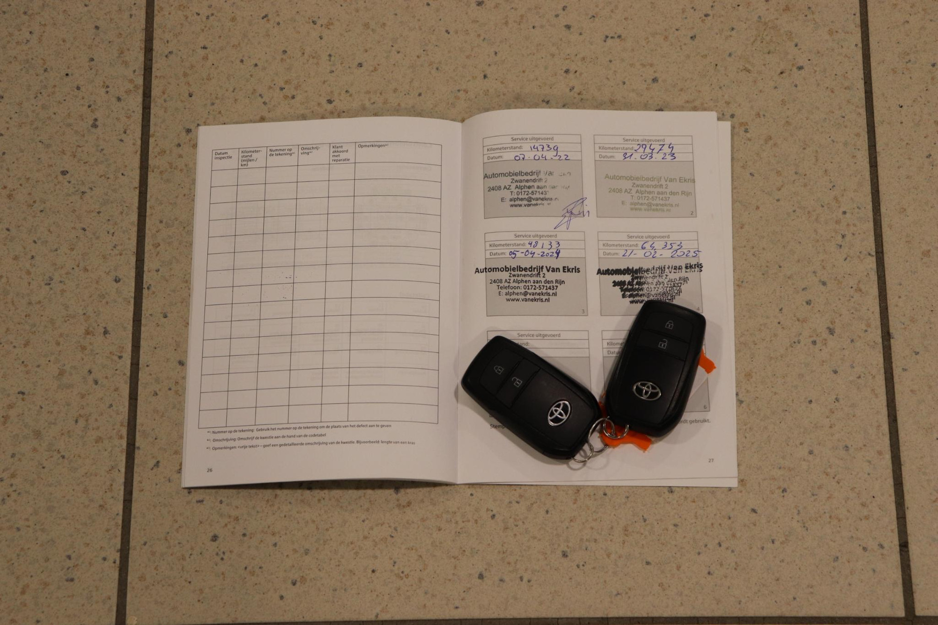 - Onderhoudsboekje (fysiek)