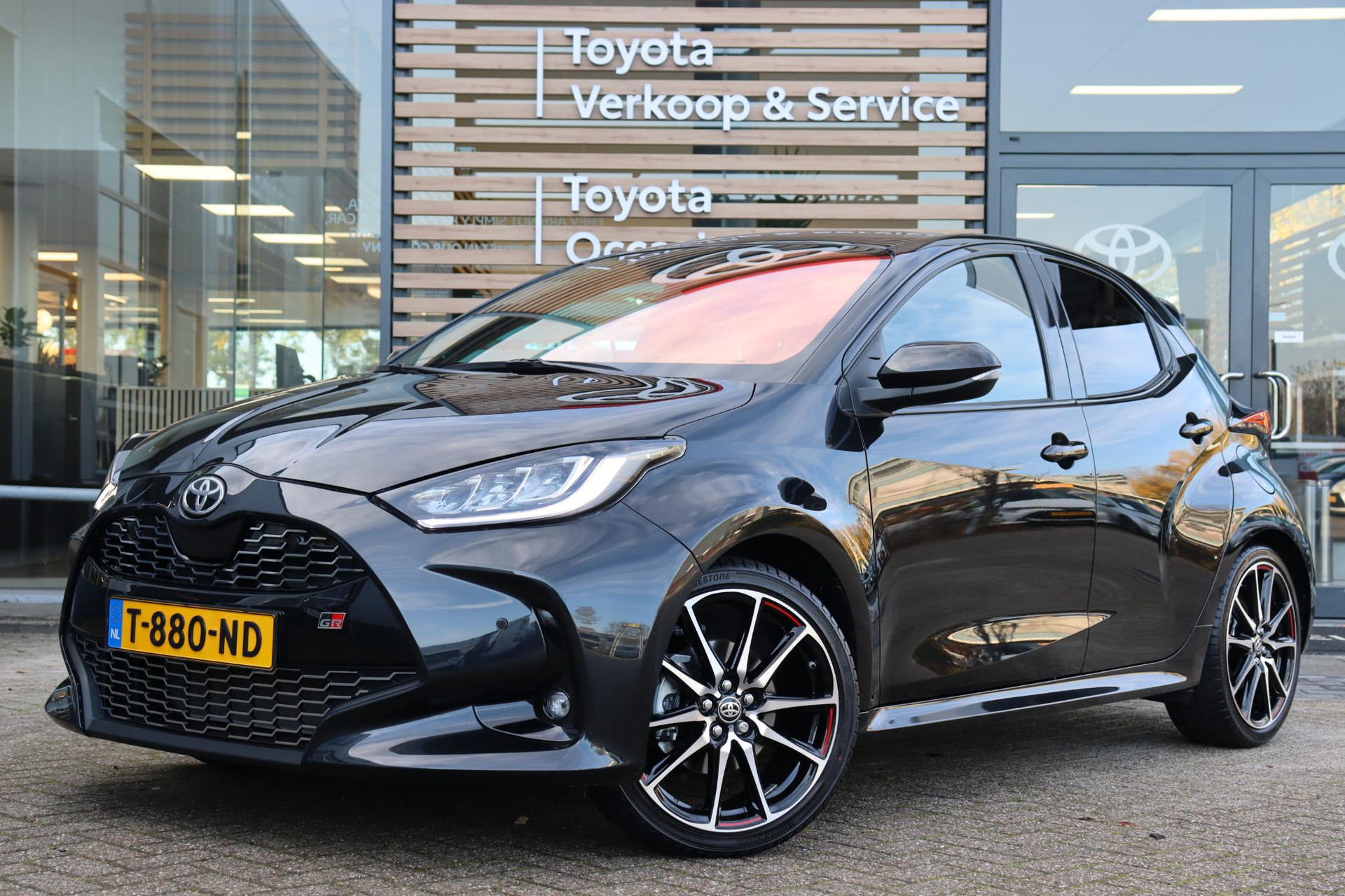 Extra rijk uitgeruste Toyota Yaris 1.5 Hybrid GR-Sport in de kleur Night Sky Black Metallic met onder andere: