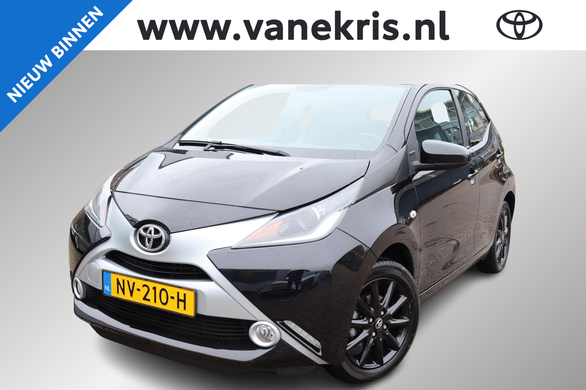 Opvallende Toyota Aygo 5-Deurs X-play in de kleur Midnight Black metallic. Deze Aygo is voorzien van 15 inch lichtmetalen velgen zwart hoogglans origineel Toyota, zilveren ornamenten, parkeercamera, airco, Navi, snelheidsbegrenzer en meer!