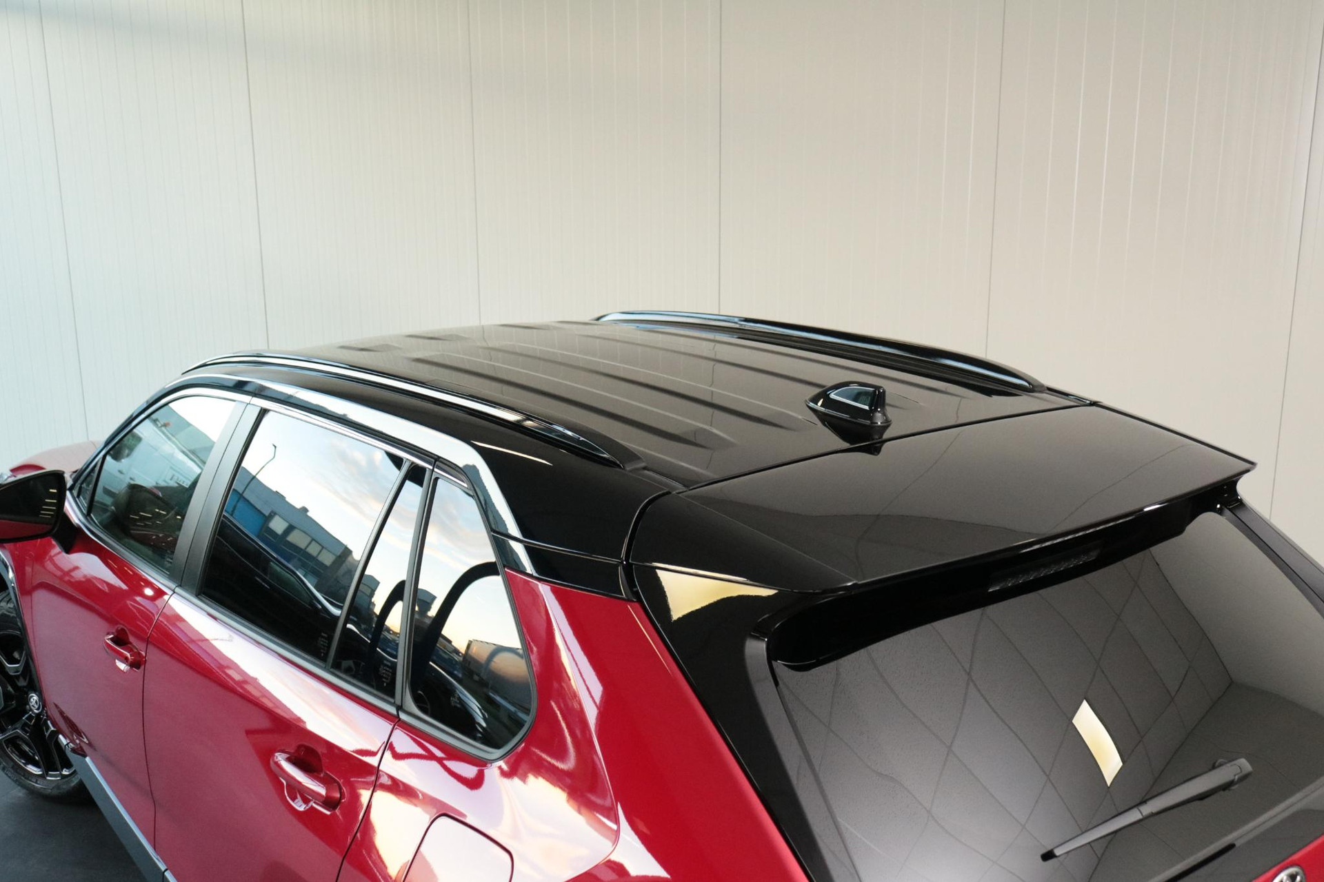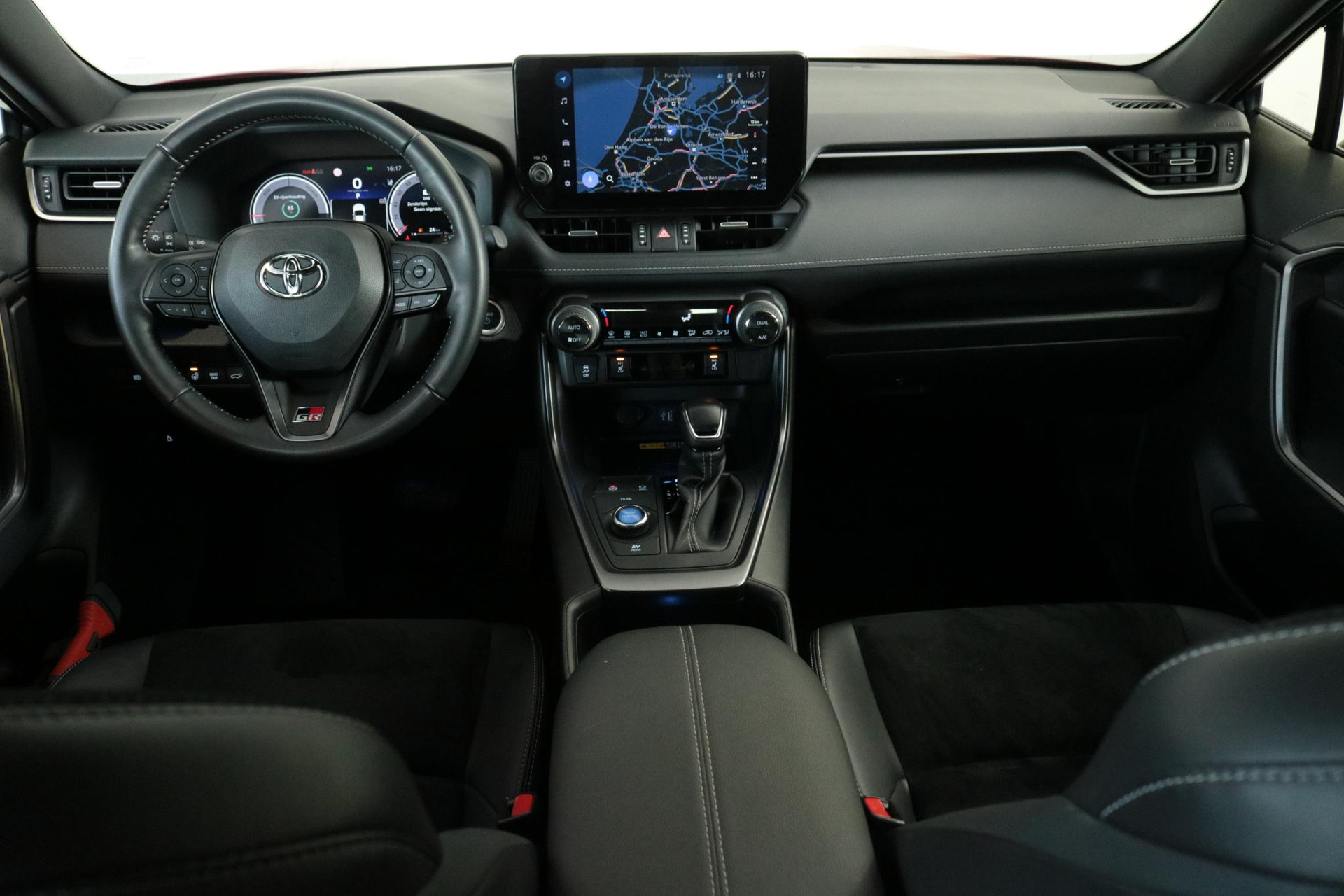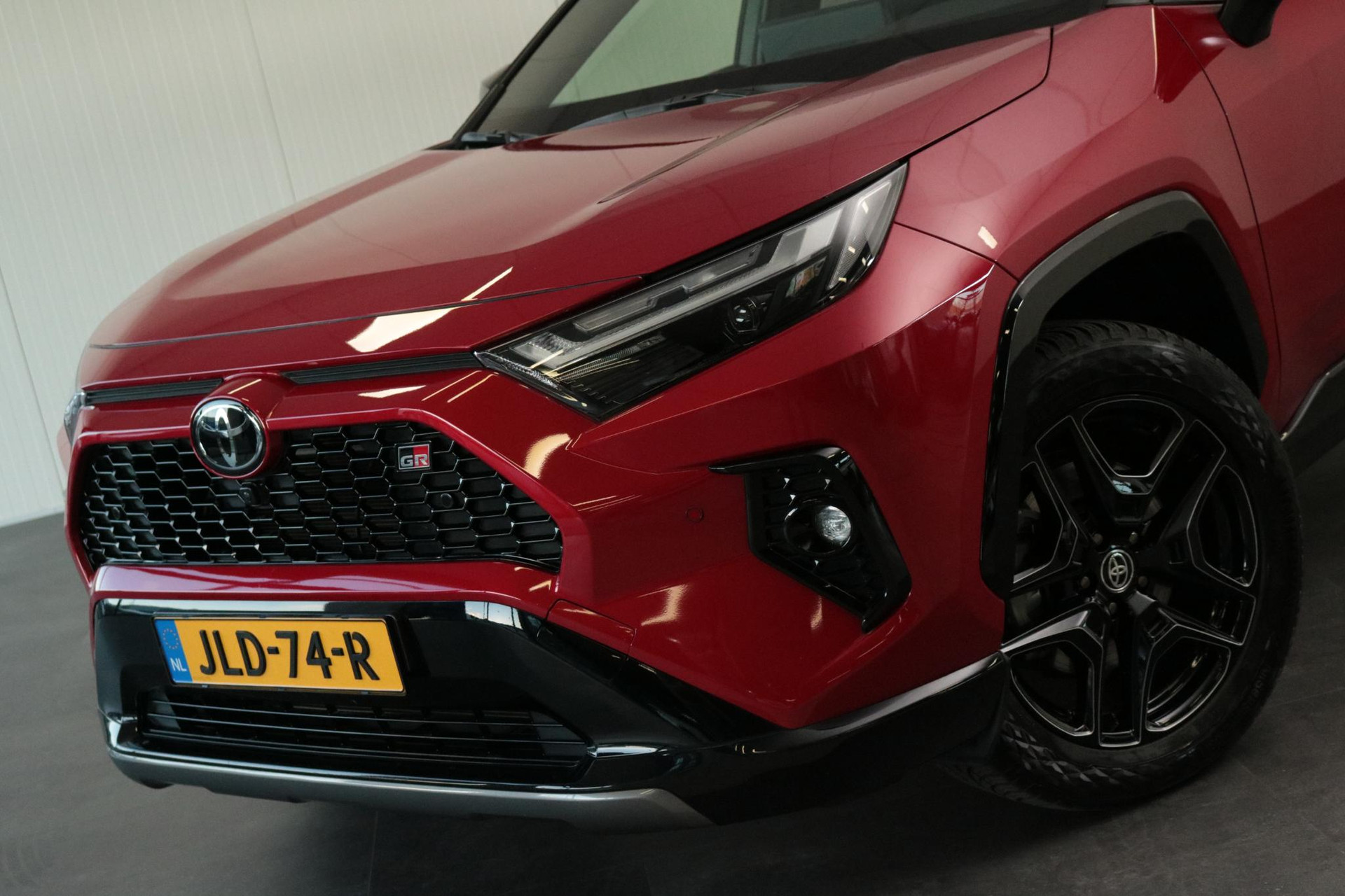Toyota RAV4 2.5 Hybrid AWD GR Sport in de prachtige kleur Emotional red met een Zwart dak. Compleet uitgerust met 360 graden Camera, Draadloos opladen, Stuurverwarming, Dodehoek Detectie, Parkeercamera, Apple carplay / Android auto, Parkeersensoren voor / achter En nog veel meer!
