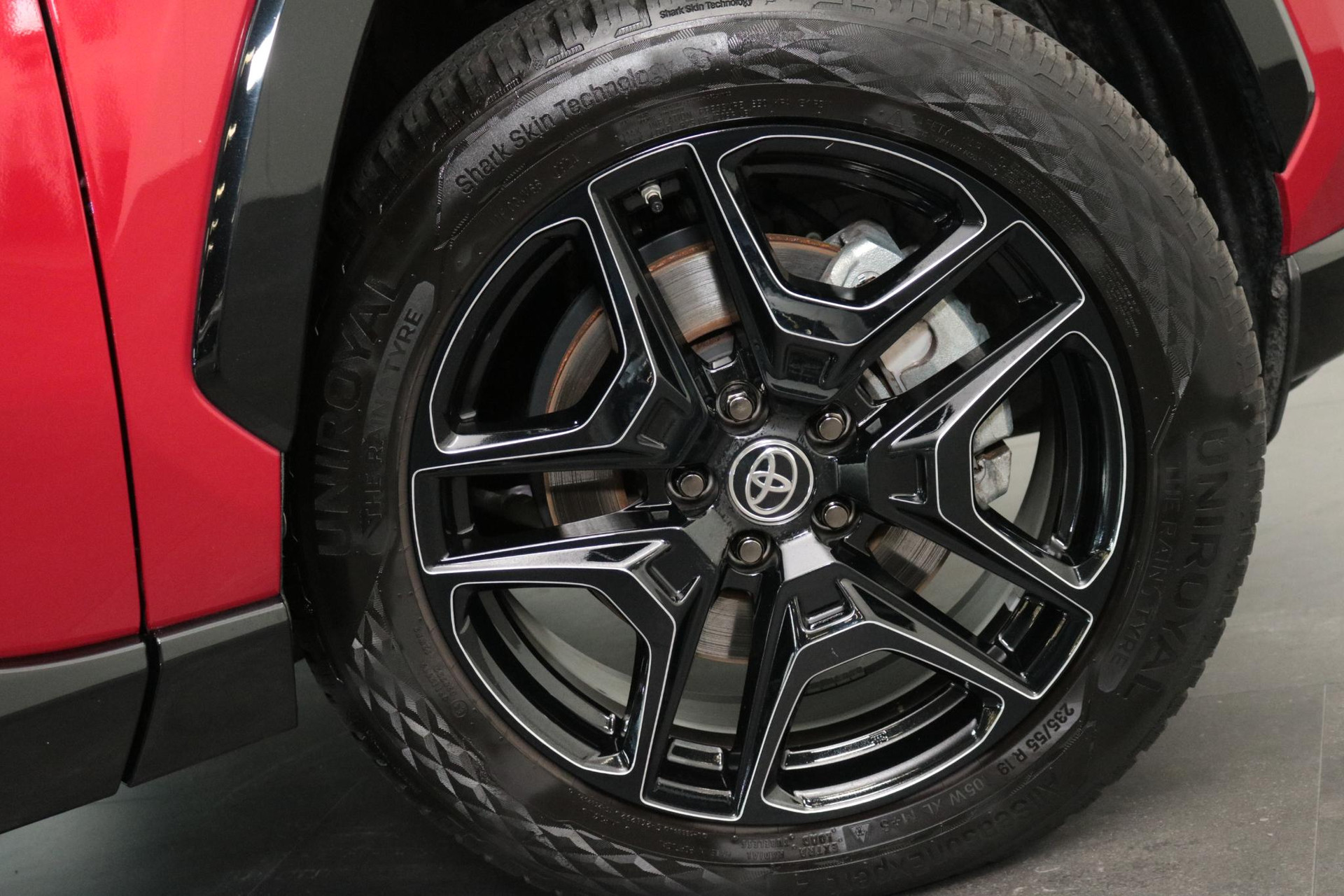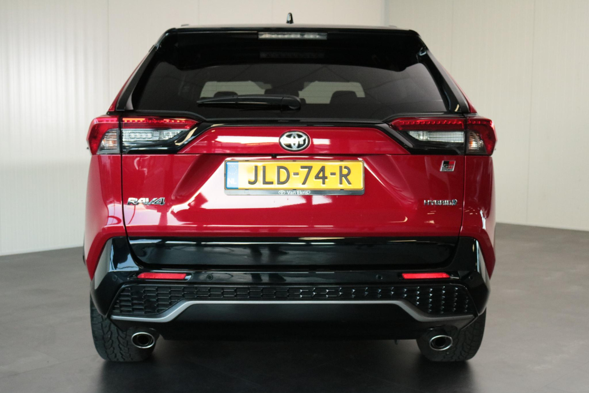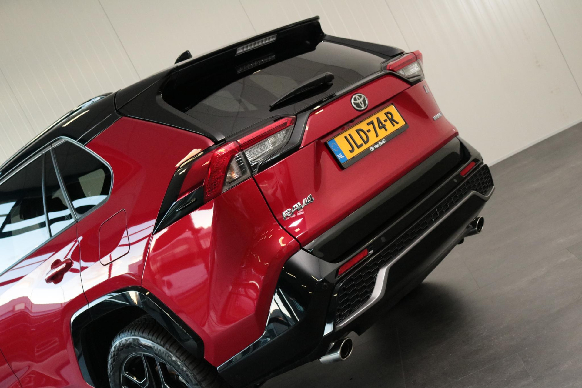 Toyota RAV4 2.5 Hybrid AWD GR Sport in de prachtige kleur Emotional red met een Zwart dak. Compleet uitgerust met 360 graden Camera, Draadloos opladen, Stuurverwarming, Dodehoek Detectie, Parkeercamera, Apple carplay / Android auto, Parkeersensoren voor / achter En nog veel meer!