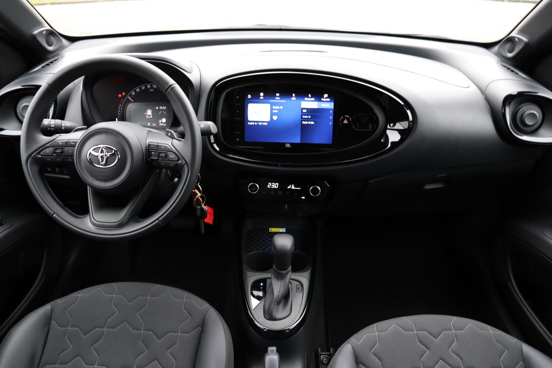 Toyota Aygo X 1.0 VVT-i S-CVT Automaat, is door ons als dealer nieuw geleverd en onderhouden, Deze Leuke Aygo is ook nog eens rijk uitgerust zo heeft de auto, JBL Audio, Parkeercamera, Draadloos Apple Carplay / Android auto, Automatische Klimaatbeheersing, Elektrisch verstelbare buitenspiegels, 18" Velgen en nog veel meer!