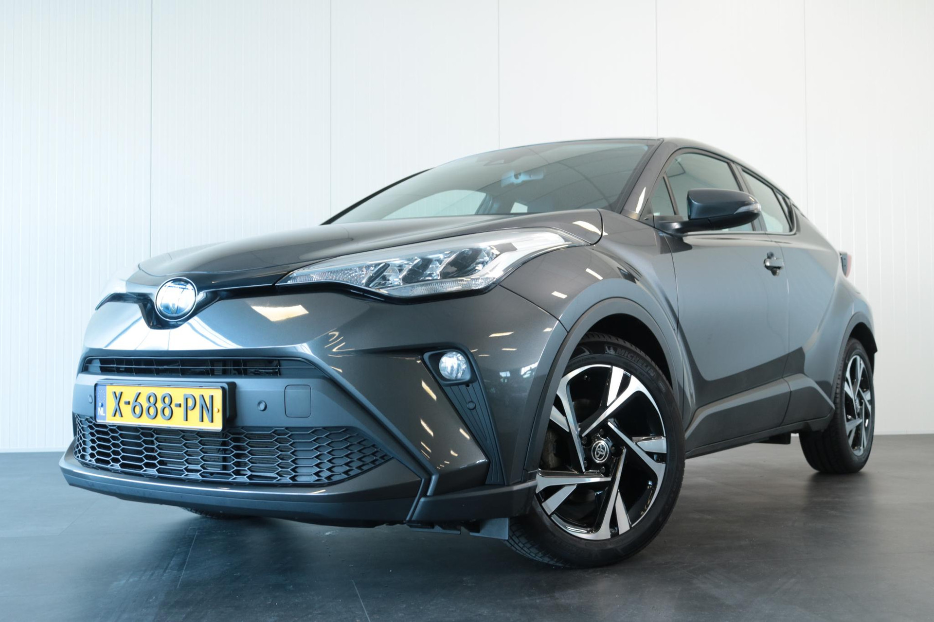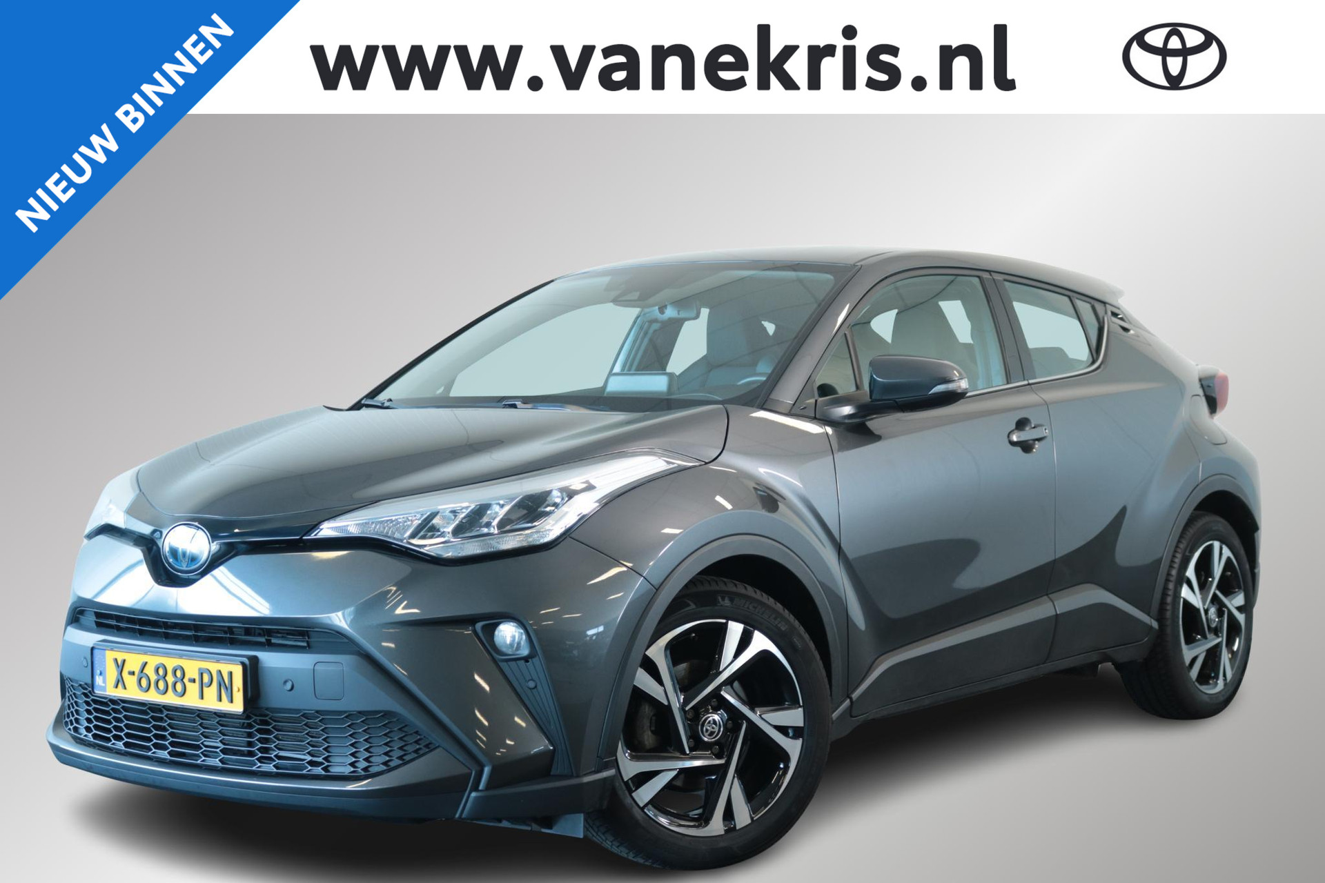 Jonge CHR 2.0 Hybrid Dynamic in de kleur Ash Grey metallic. Deze Coupe High Rider is door ons nieuw geleverd en onderhouden. Voorzien van Blind spot monitor, parkeersensoren voor en achter, Adaptive cruise control, deels lederen bekleding, Apple carplay, Android auto en meer!