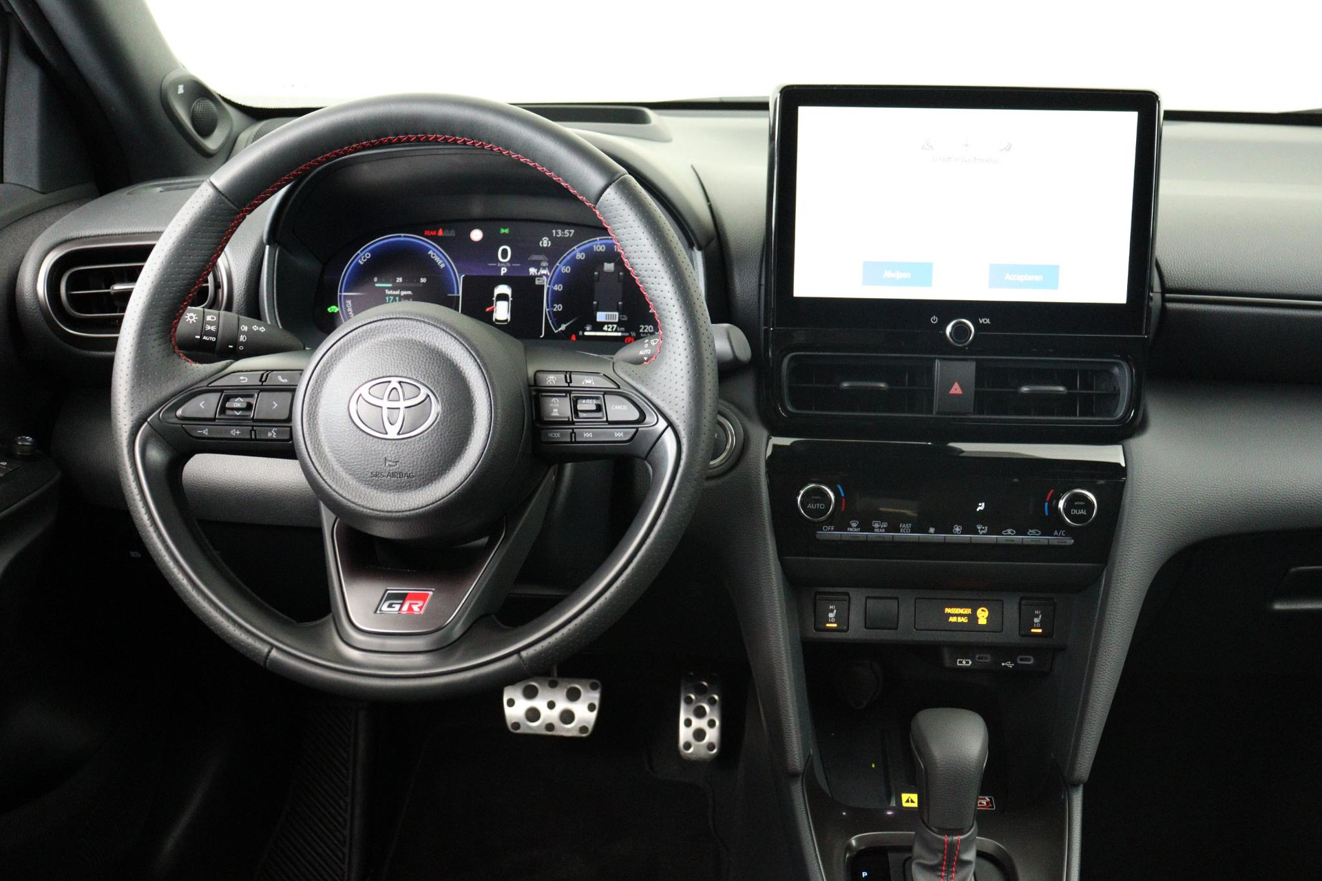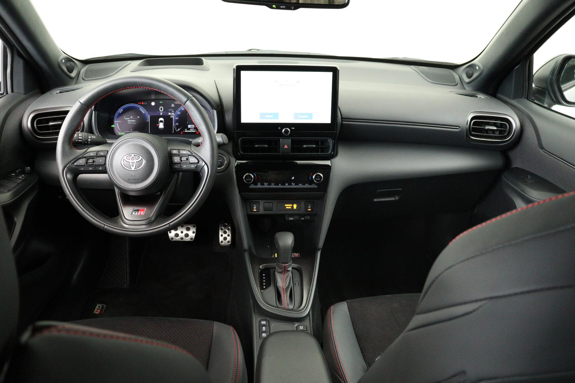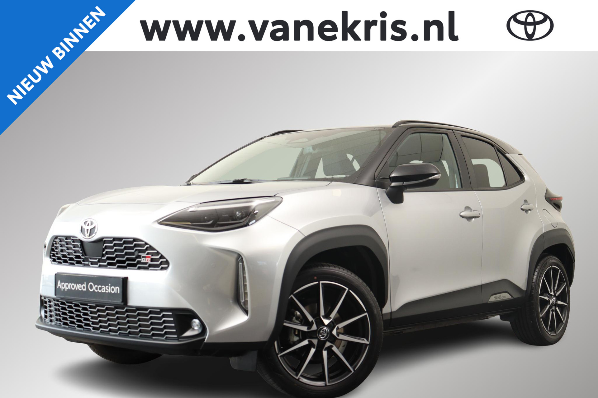 Deze rijk uitgeruste Yaris cross 130PK GR Sport in Bitone kleur Shimmering Silver met zwarte bovenzijde is voorzien van parkeersensoren voor en achter, Head up display, JBL Audio, Apple CarPlay / Android Auto, Blind spot monitor, Stoel en stuurverwarming, een elektrisch bediende achterklep en nog veel meer! Uiteraard voorzien van GR Suede stoelen en de GR 18 inch lichtmetalen velgen. Huidige nieuweprijs €42.290!