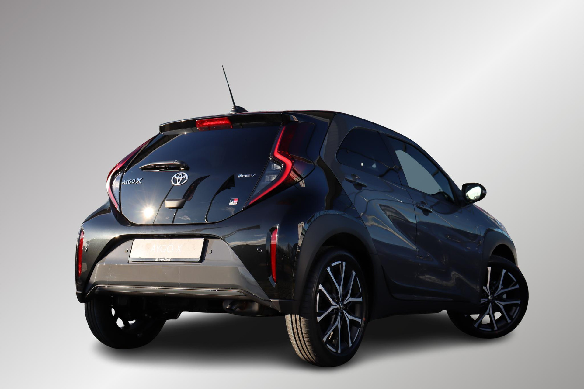 Toyota AYGO X Hybrid 115 In de GR Sport uitvoering in de kleur Storm Gray . Deze GR Aygo X is net op de markt en rijk uitgerust! Zo heeft deze Aygo Parkeersensoren voor en achter, Parkeercamera, JBL Audio met in de achterbak een Sub woofer! Keyless Entry, Automatisch inklapbare buitenspiegels En nog veel meer!