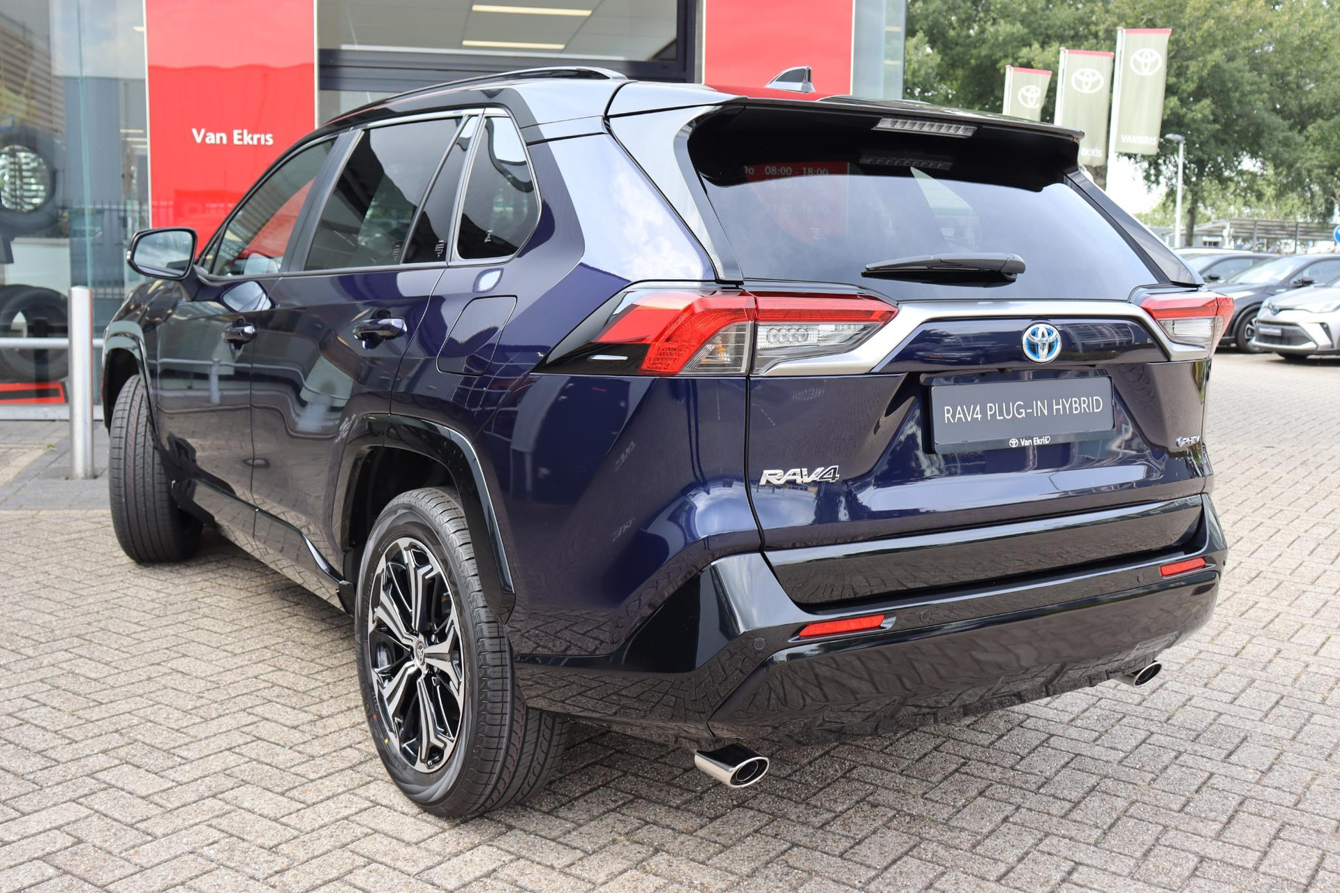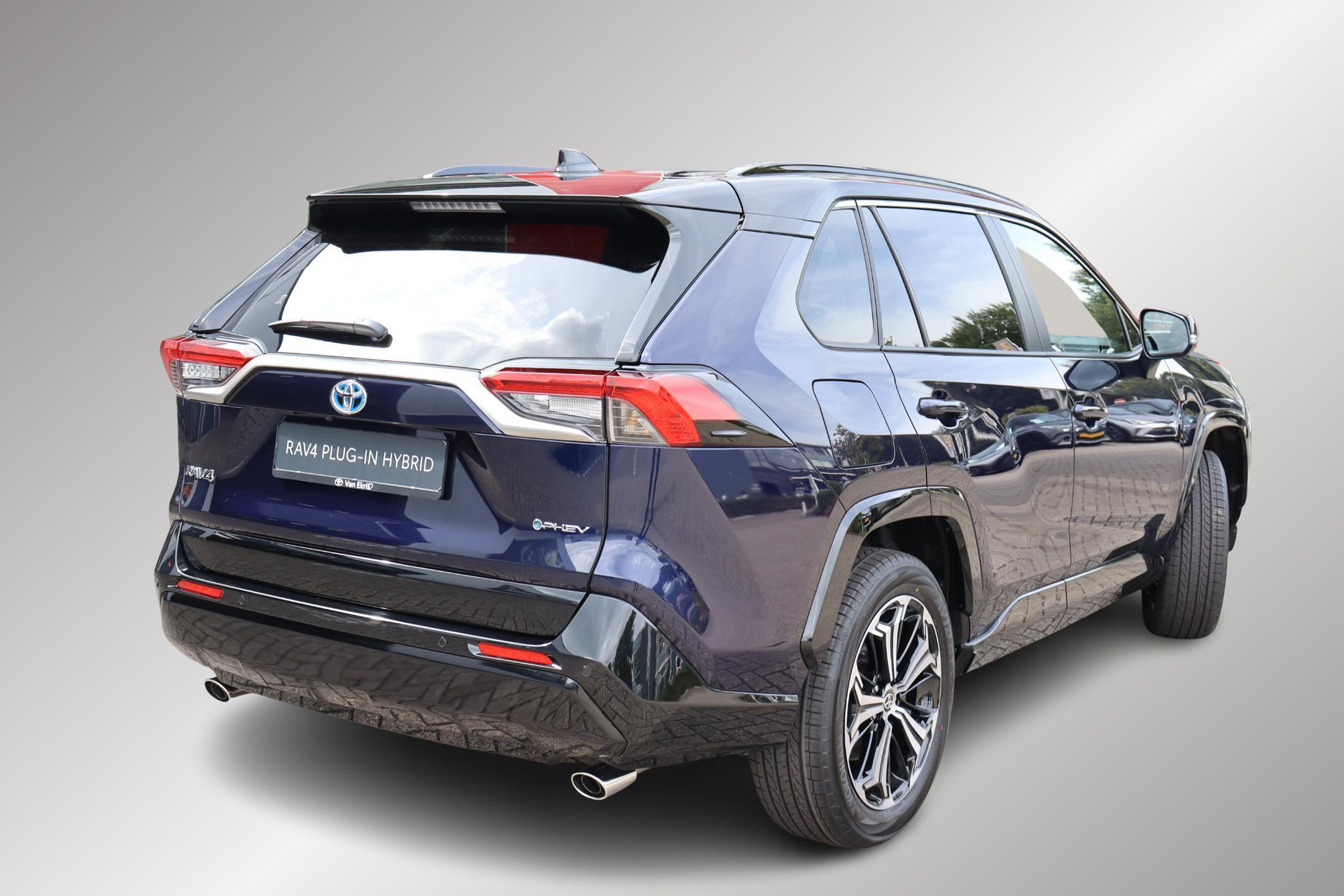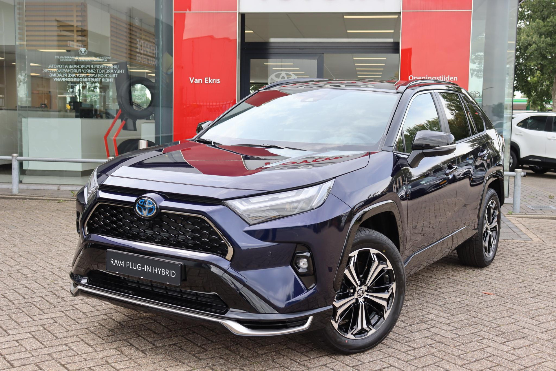 3.7 kWRAV4 AWD Plug-In Bi-Tone Plus in de kleur Midnight Blue metallic met zwarte bovenzijde. voorzien van veel luxe optie's zoals parkeersensoren voor en achter met automatische remfunctie, Blind spot monitor, Head up display, JBL audio met subwoofer, 360 graden camera, draadloze telefoonlader, achteruitrij assistent, Camera in binnenspiegel, zwart leder, stoelventilatie en meer!