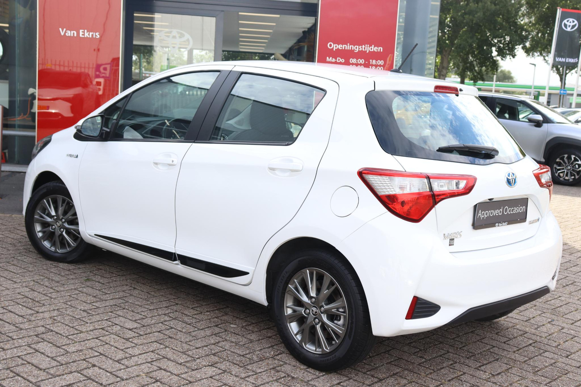 Yaris 1.5 Hybrid Dynamic Limited in de kleur Pure white met zwarte accenten. Deze Yaris is voorzien van cruise control, 15 inch lichtmetalen velgen, Toyota Safety Sense, startknop, elek.inklapbare buitenspiegels en meer!